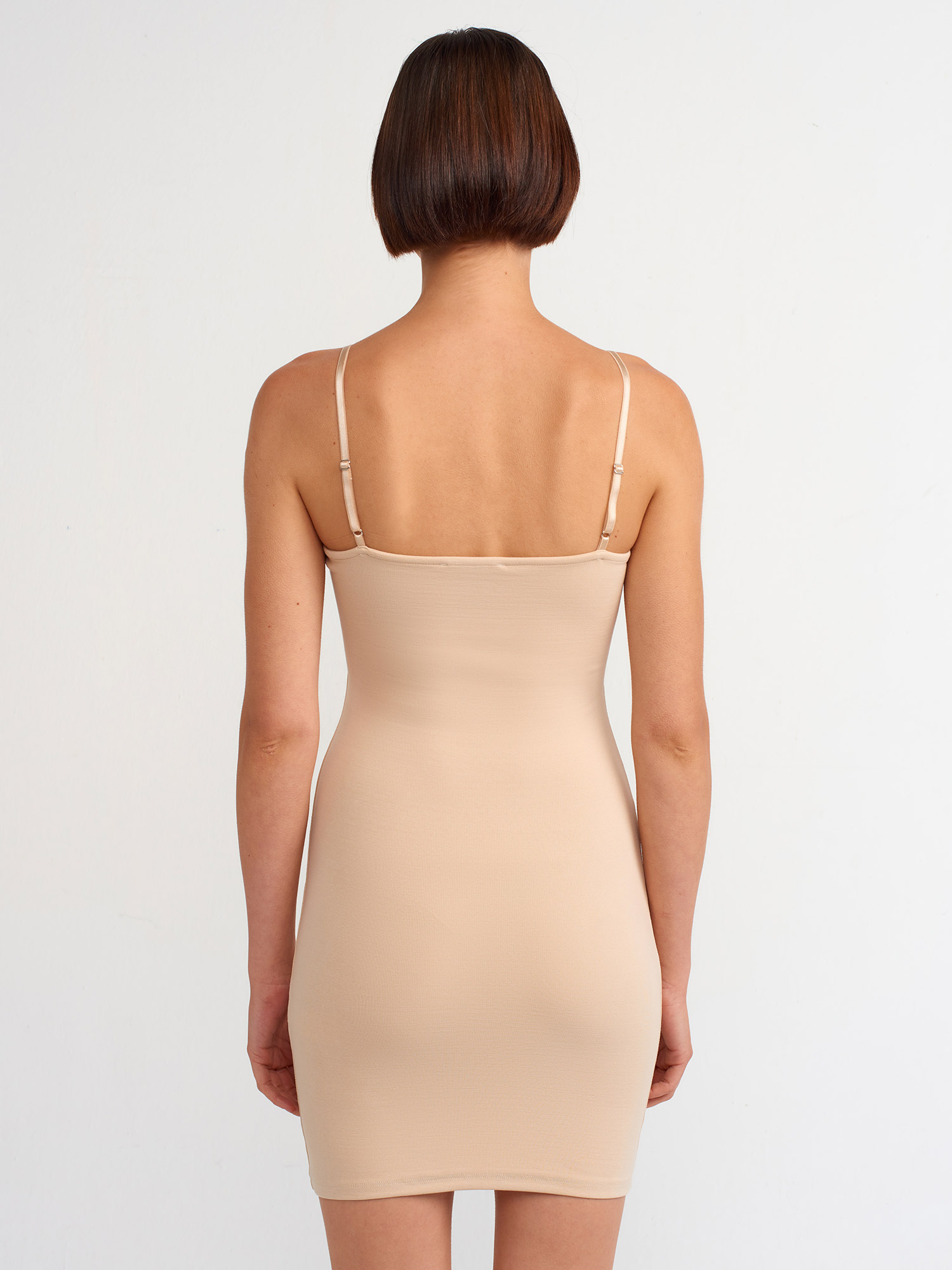 91129 Vücuda Oturan Askılı Mini Elbise-Açık Bej
