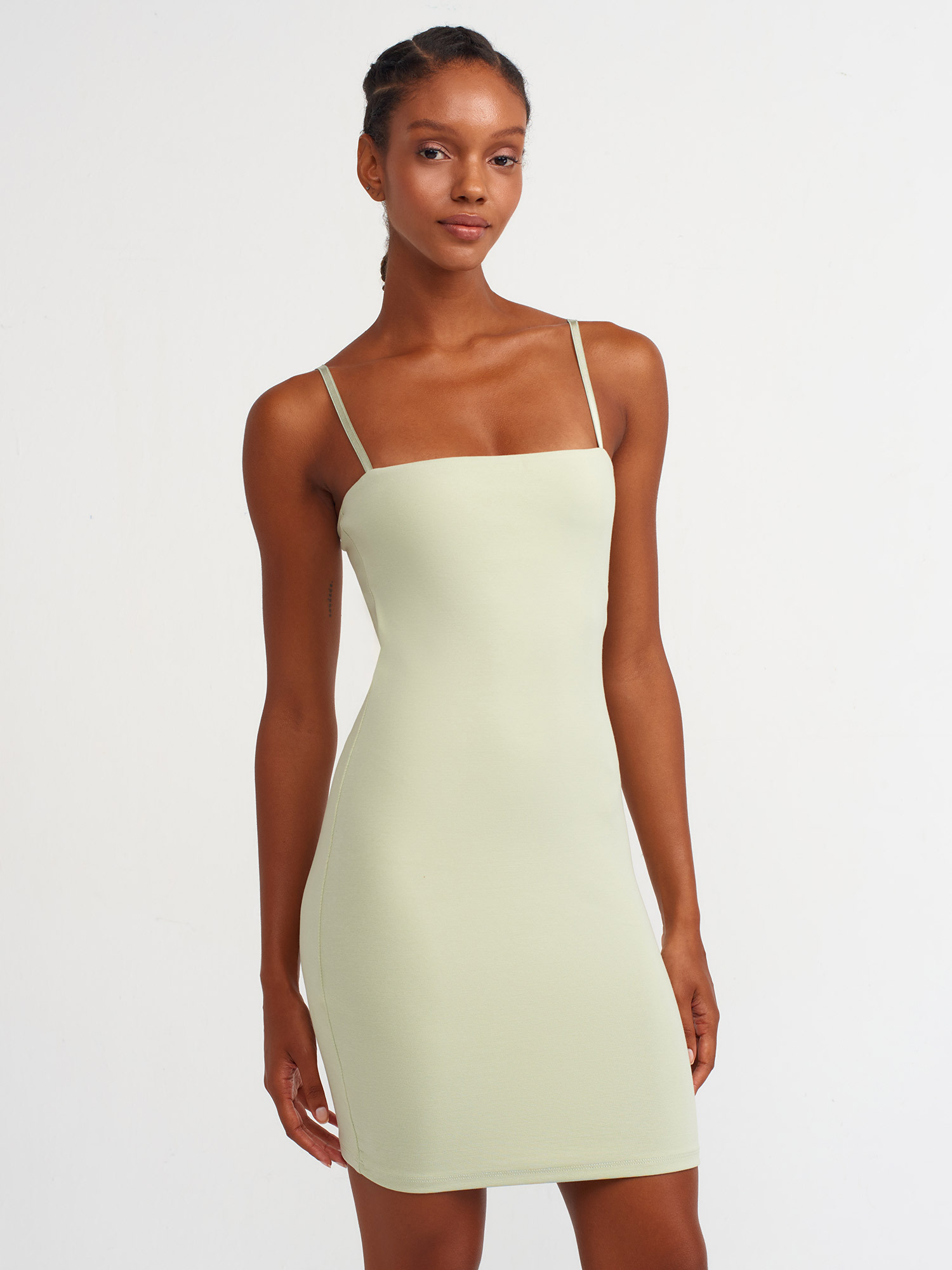 91129 Vücuda Oturan Askılı Mini Elbise-Mint