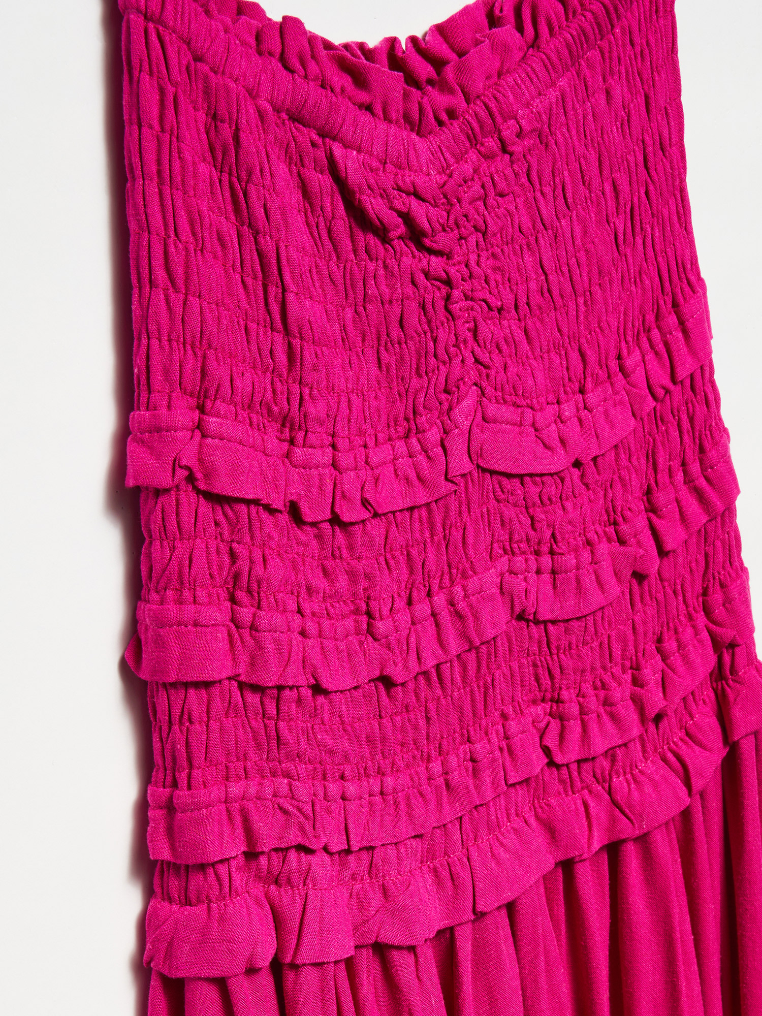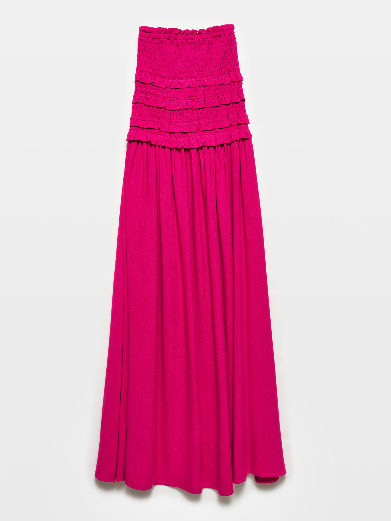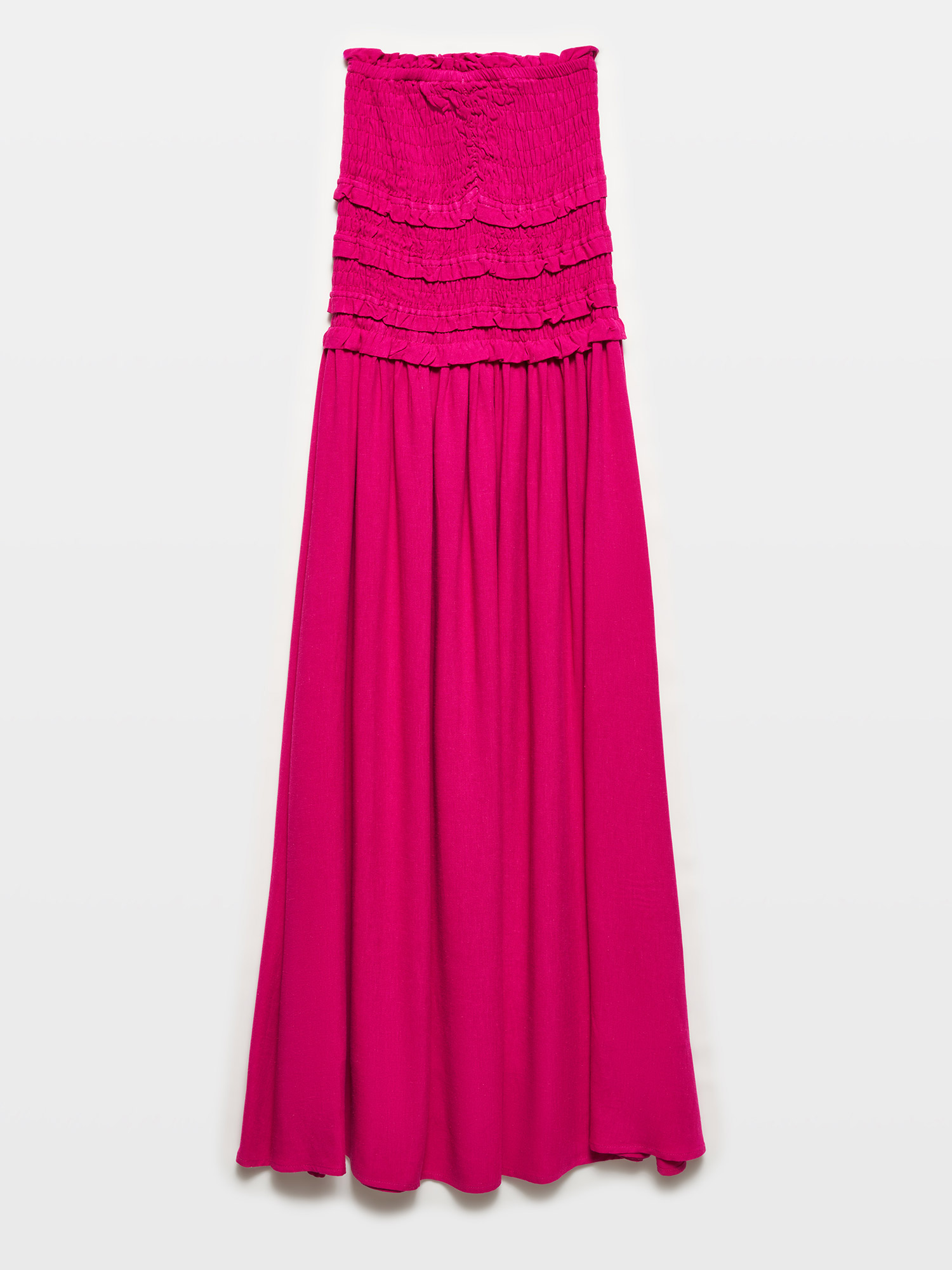91220 Gipe Detaylı Straplez Elbise-Fuşya