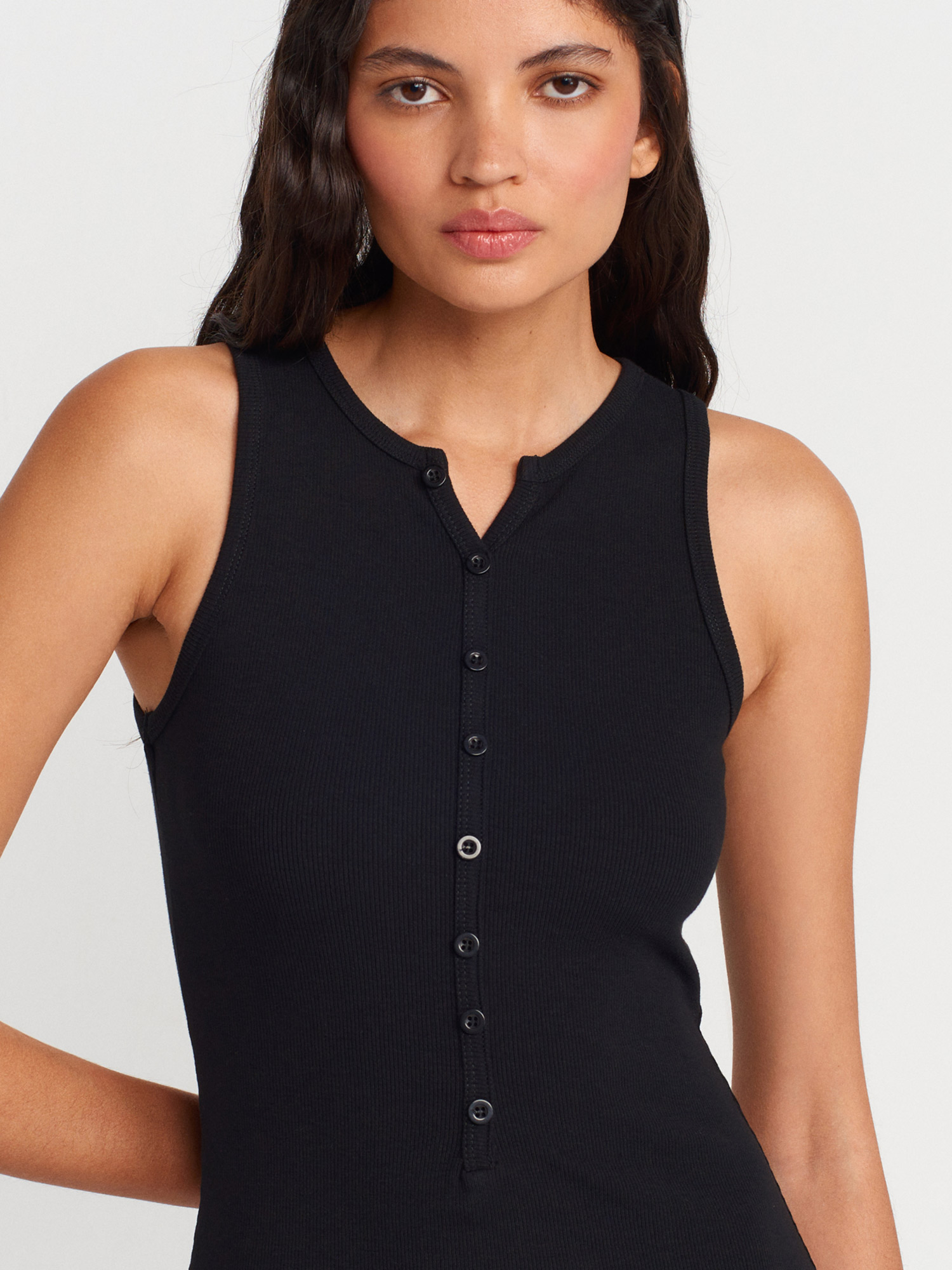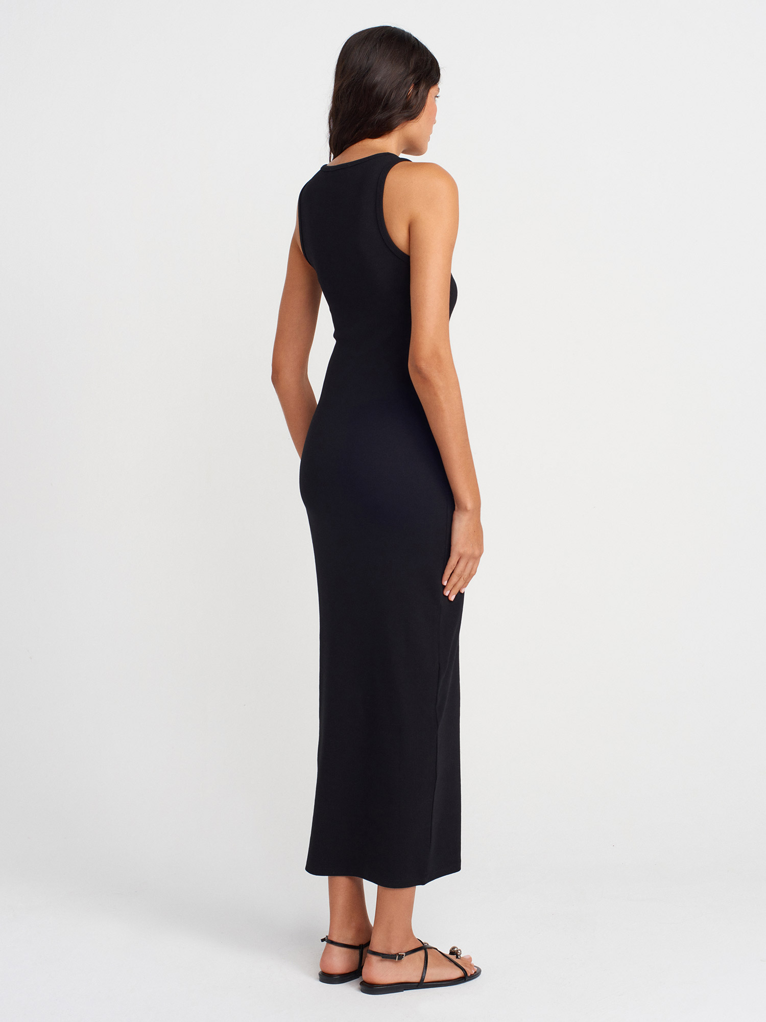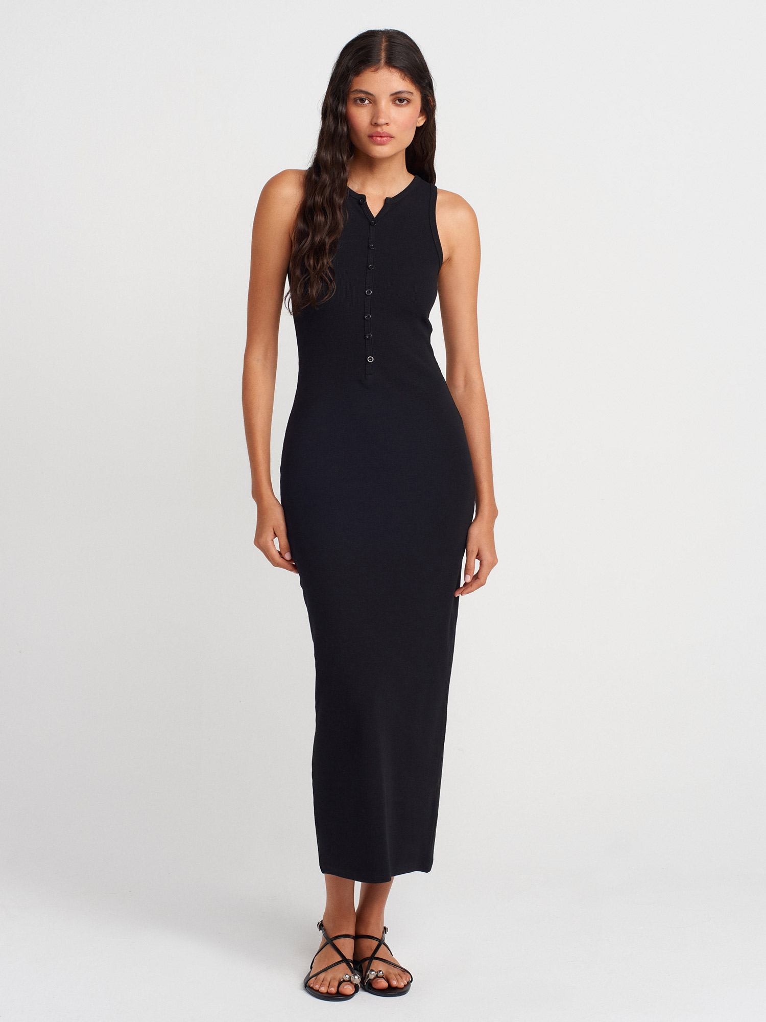 91467 Düğme Detaylı Maxi Boy Elbise-Siyah