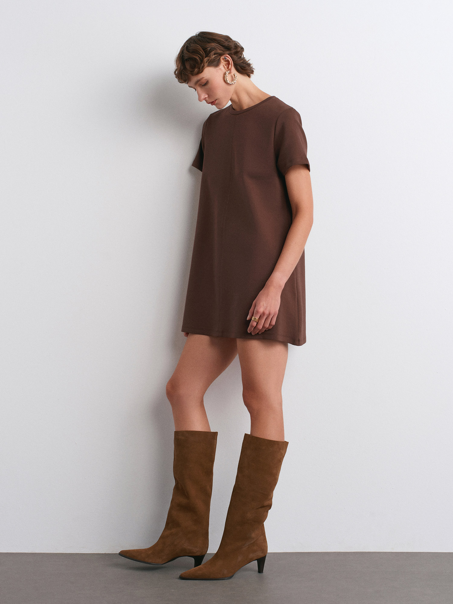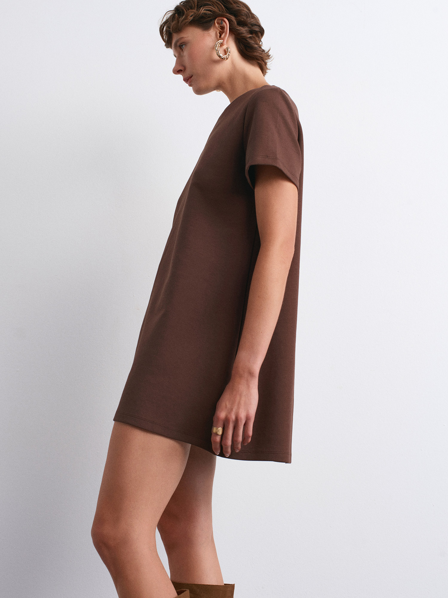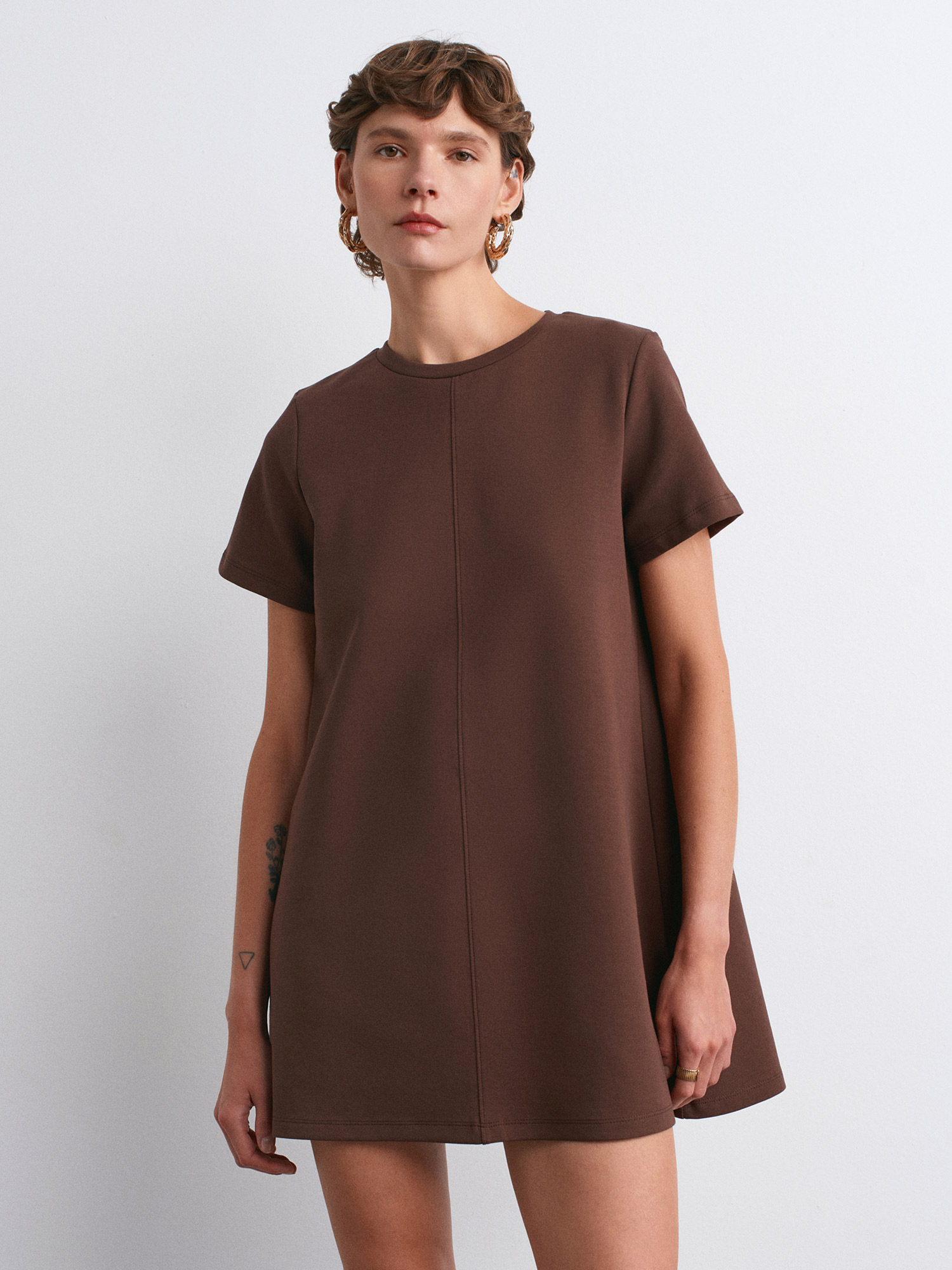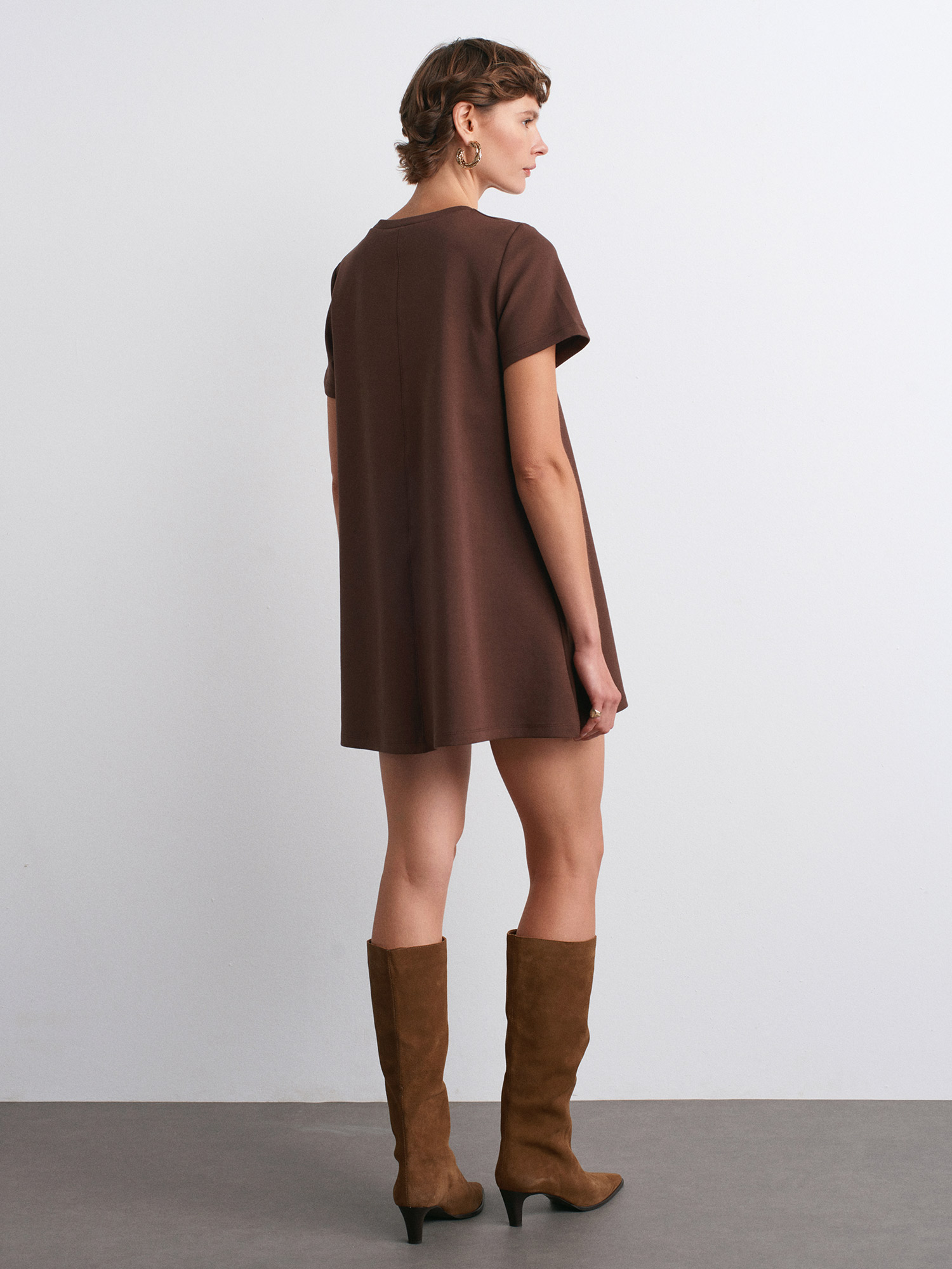 91523 Kısa Kollu Mini Elbise-Açık Kahve