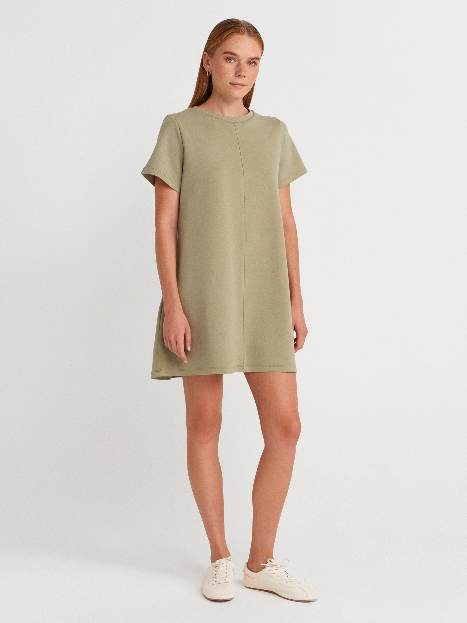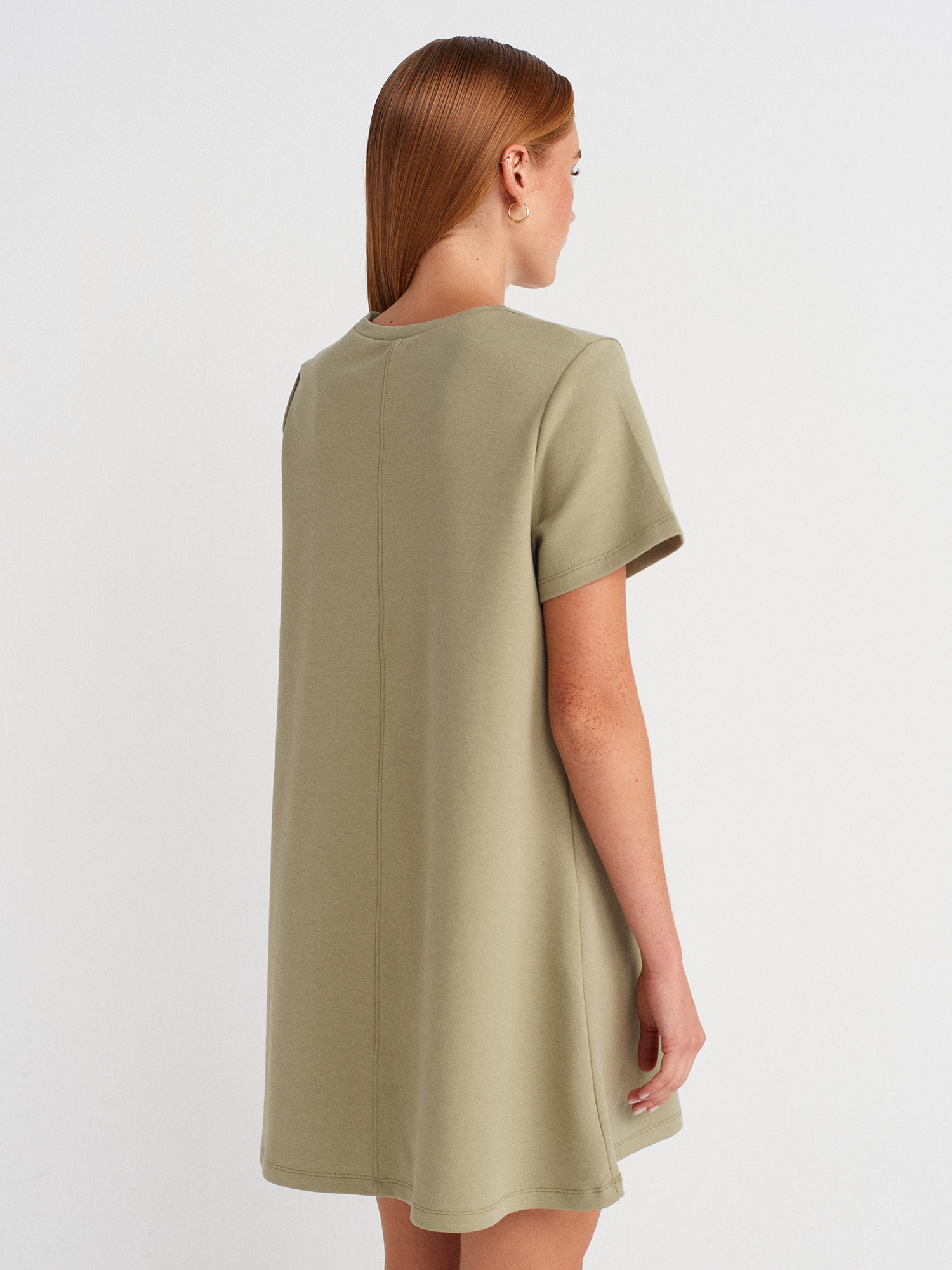 91523 Kısa Kollu Mini Elbise-Çağla
